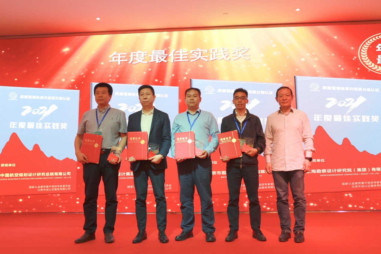獲得勘察設(shè)計企業(yè)質(zhì)量管理管理體系升級版年度創(chuàng)新引領(lǐng)年度最佳實踐獎的單位有中國航空規(guī)劃設(shè)計研究總院有限公司、華設(shè)設(shè)計集團股份有限公司、北京市勘察設(shè)計研究院有限公司和上??辈煸O(shè)計研究院(集團)有限公司。由中國勘察設(shè)計協(xié)會理事長施設(shè)頒獎。